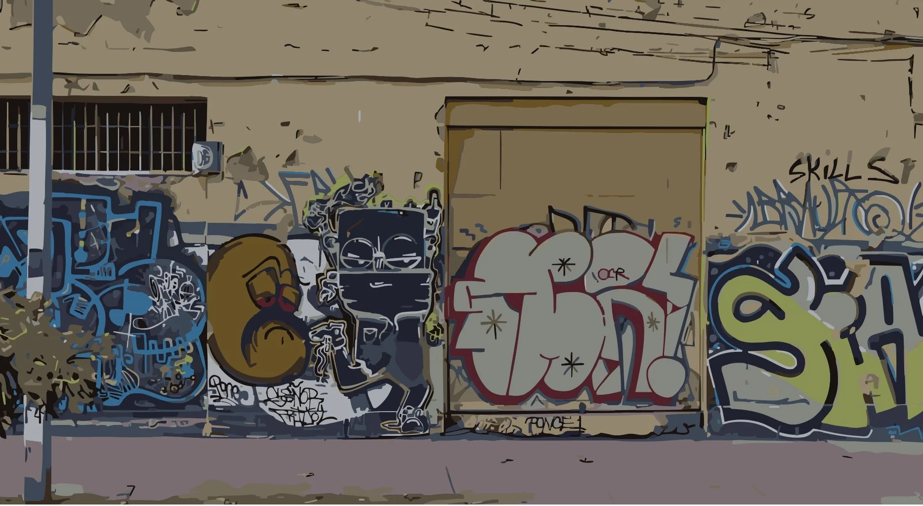 I overlaid fresh artwork on an abandoned graffiti-covered wall near the Río Mapocho, painting my character “Señor Frijol” alongside other Chilean writers. Señor Frijol first appeared in the pages of my high school planner, a sketch I made as a joke that gradually grew into different permutations. Growing up, everyone seemed to have a graffiti cartoon character, so I chose one that felt symbolically Latin American. His round body reflects the color of the earth, and his oversized mustache came to symbolize wisdom. I asked myself, what could be more Latin American than a humble bean? As time progressed, I realized the bean is somewhat universal, since beans are a staple food across the Americas and much of the world, often paired with rice as the foundation of daily meals. Friends like to remind me that Señor Frijol resembles Mr. Potato Head, and he does, only without shoes, ears, lips, or a nose.